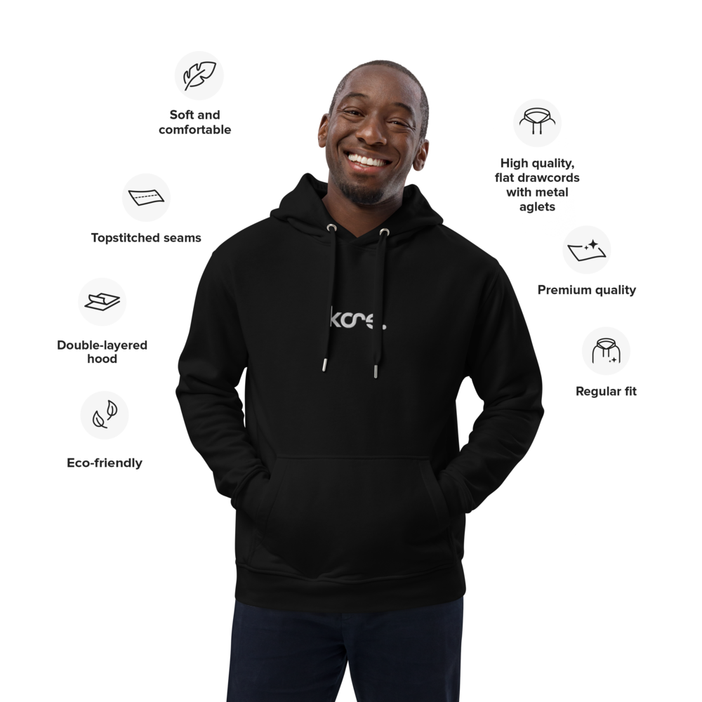 Meet the premium eco hoodie made of organic and recycled materials. With its comfortable fit, front pouch pocket, and double-layered hood, the hoodie is a classic streetwear piece that can be styled with multiple different looks.